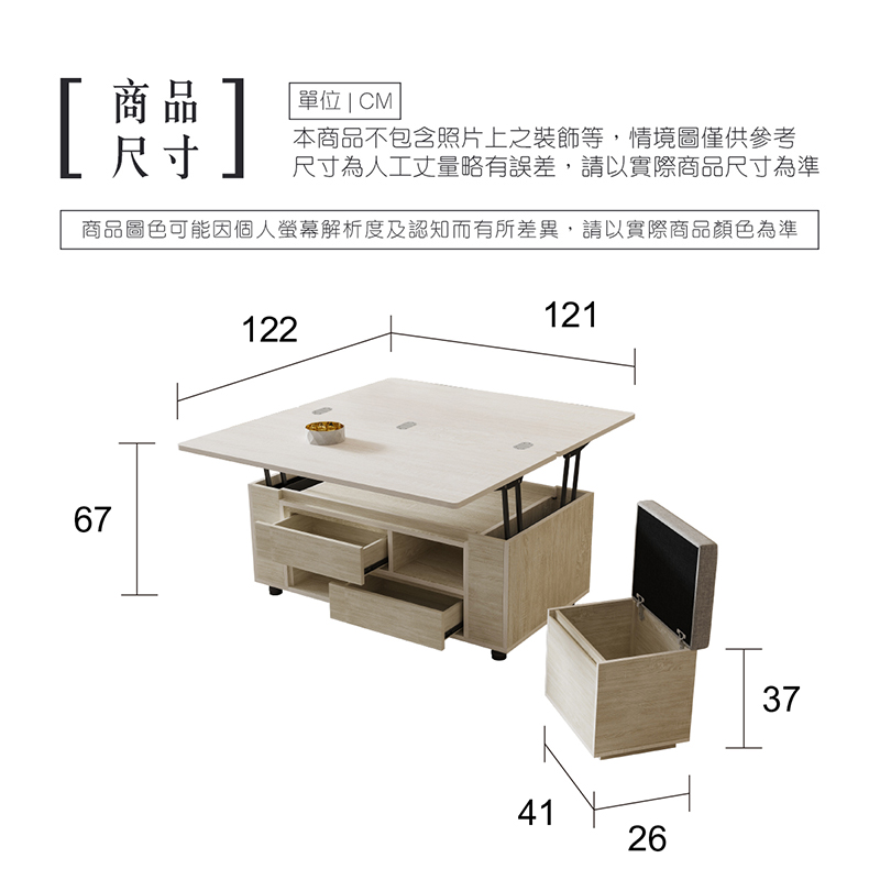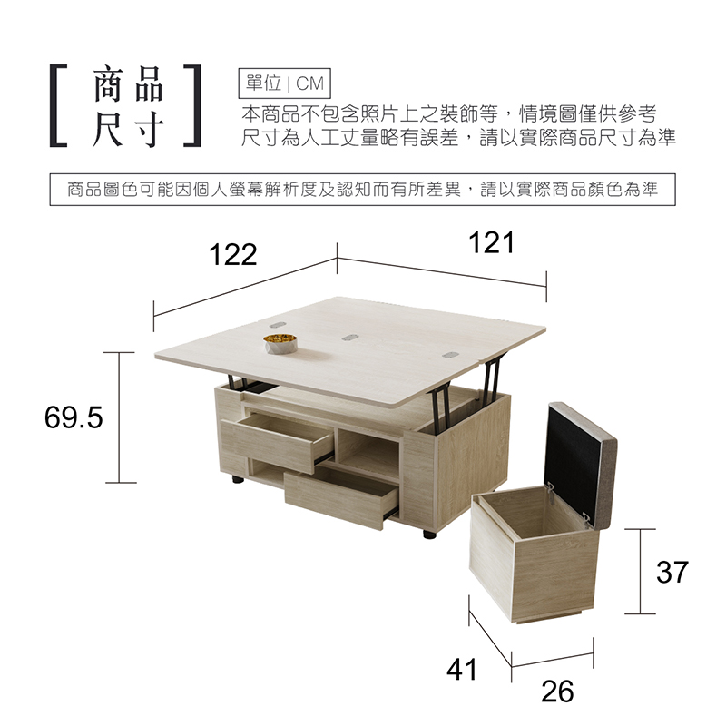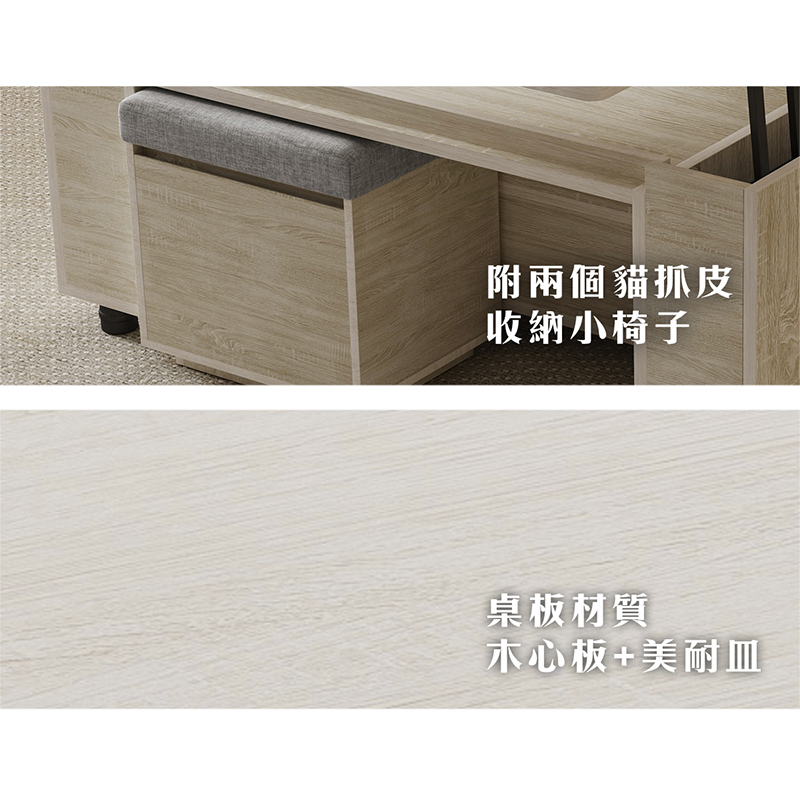 商品介紹 升降桌:小戶型必備,茶几變餐桌 機能強:多功能造型+收納大空間 收納椅:附加兩個貓抓皮收納小椅 桌 板:木心板+美耐皿材質,提供三色選擇 MIT:台灣在地製造,工廠直營 (圖為實際拍攝照片,注意螢幕均有色差) 配送周期 商品下單至送達約需 2-4 周,實際配送時間依地區及路線有所不同,請以物流公司和您聯繫為主