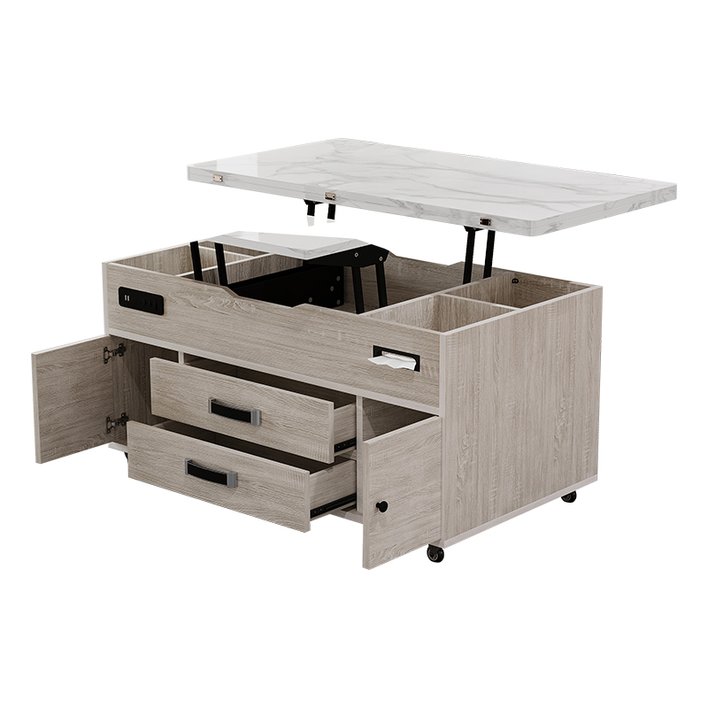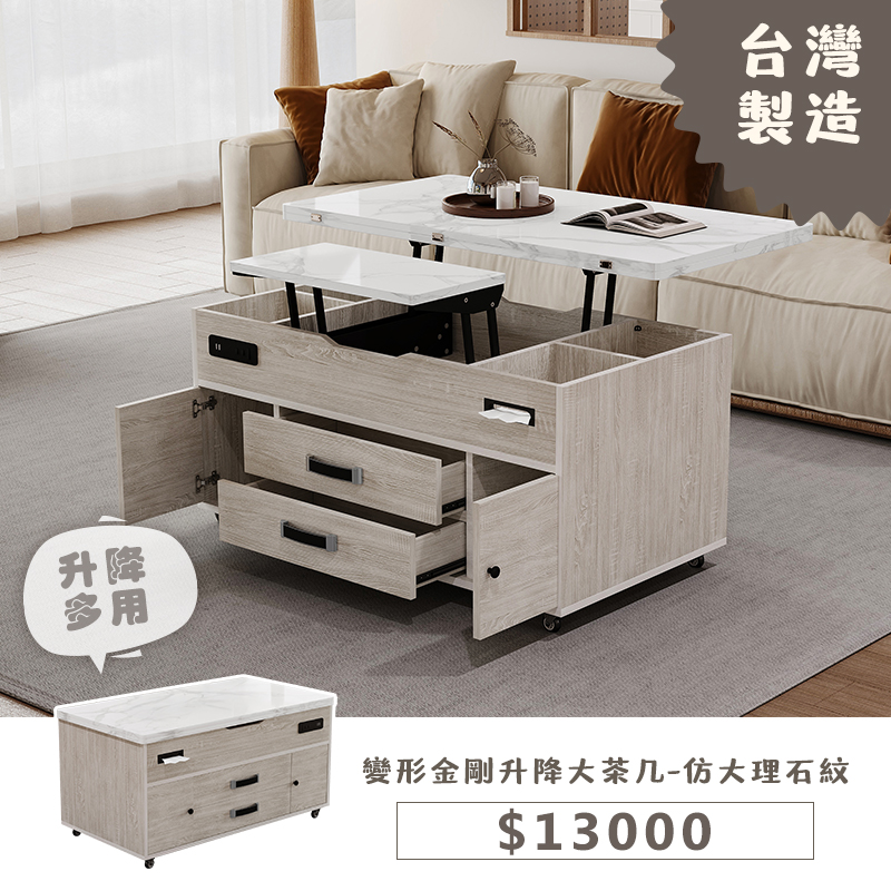 商品介紹 升降桌:小戶型必備,茶几變餐桌 面紙孔:多功能造型+收納大空間 萬向輪:移動煞車輪讓打掃更方便 收納椅:附加兩張貓抓皮收納小椅 材 質:木心板 + 大理石紋美耐皿貼皮 MIT:台灣在地製造,工廠直營 插 座:USB x 2、二插 x 2、斷電開關 x 1 (圖為實際拍攝照片,注意螢幕均有色差) 配送周期 商品下單至送達約需 2-4 周,實際配送時間依地區及路線有所不同,請以物流公司和您聯繫為主