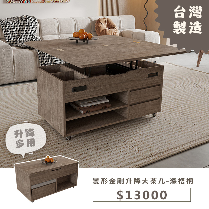 商品介紹 升降桌:小戶型必備,茶几變餐桌 面紙孔:多功能造型+收納大空間 萬向輪:移動煞車輪讓打掃更方便 收納椅:附加兩個貓抓皮收納小椅 耐磨皮:PVC 耐磨桌面使用更延長 MIT:台灣在地製造,工廠直營 插 座:USB x 2、二插 x 2、斷電開關 x 1 (圖為實際拍攝照片,注意螢幕均有色差) 配送周期 商品下單至送達約需 2-4 周,實際配送時間依地區及路線有所不同,請以物流公司和您聯繫為主