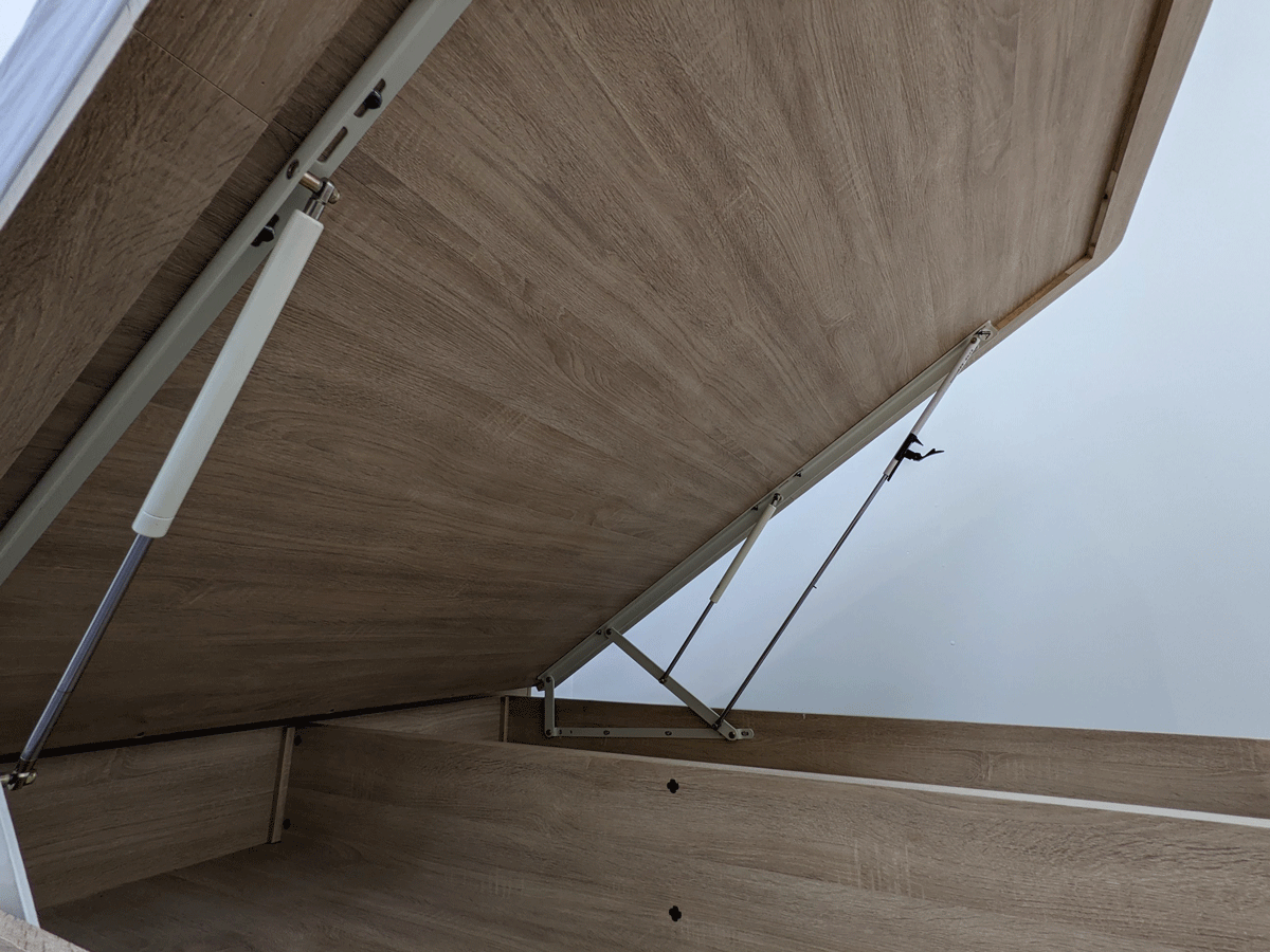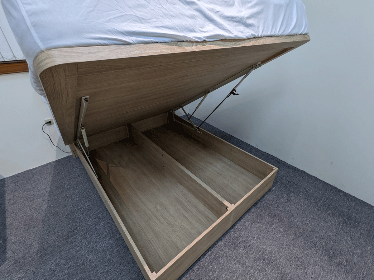 你可能會好奇,這麼大的床板,掀起來會不會需要花費很多力氣呢?別擔心~我們在設計時考慮了您的使用體驗,透過特別挑選的五金,即使力量不夠大的人也能輕鬆完成掀開動作,掀開時五金的支撐力會自動向上開啟,並彈開安全扣,這等同於兩道安全保障。而要關閉床板時,只需要輕按下安全扣,然後盡量用身體重壓即可,像匠編一隻手壓在上面就能收下來囉,這樣就不再需要過多的力量,讓您的操作更加輕鬆愉快。