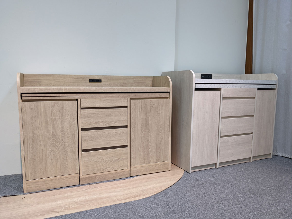 | 二件式移動餐桌櫃組-淺梧桐+白雲岩 |